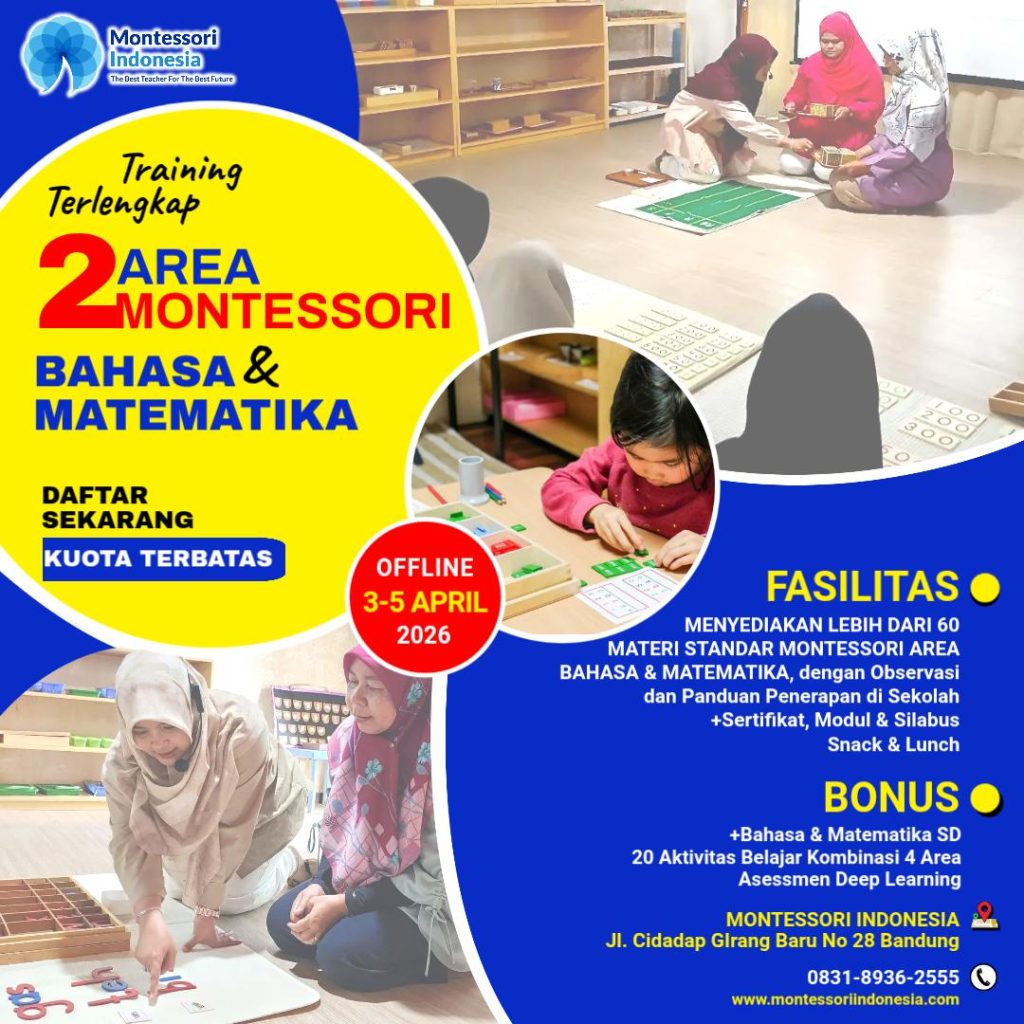 Training offline intensif Area Bahasa dan Matematika Montessori — lengkap dengan kurikulum, strategi presentasi, dan evaluasi pembelajaran.