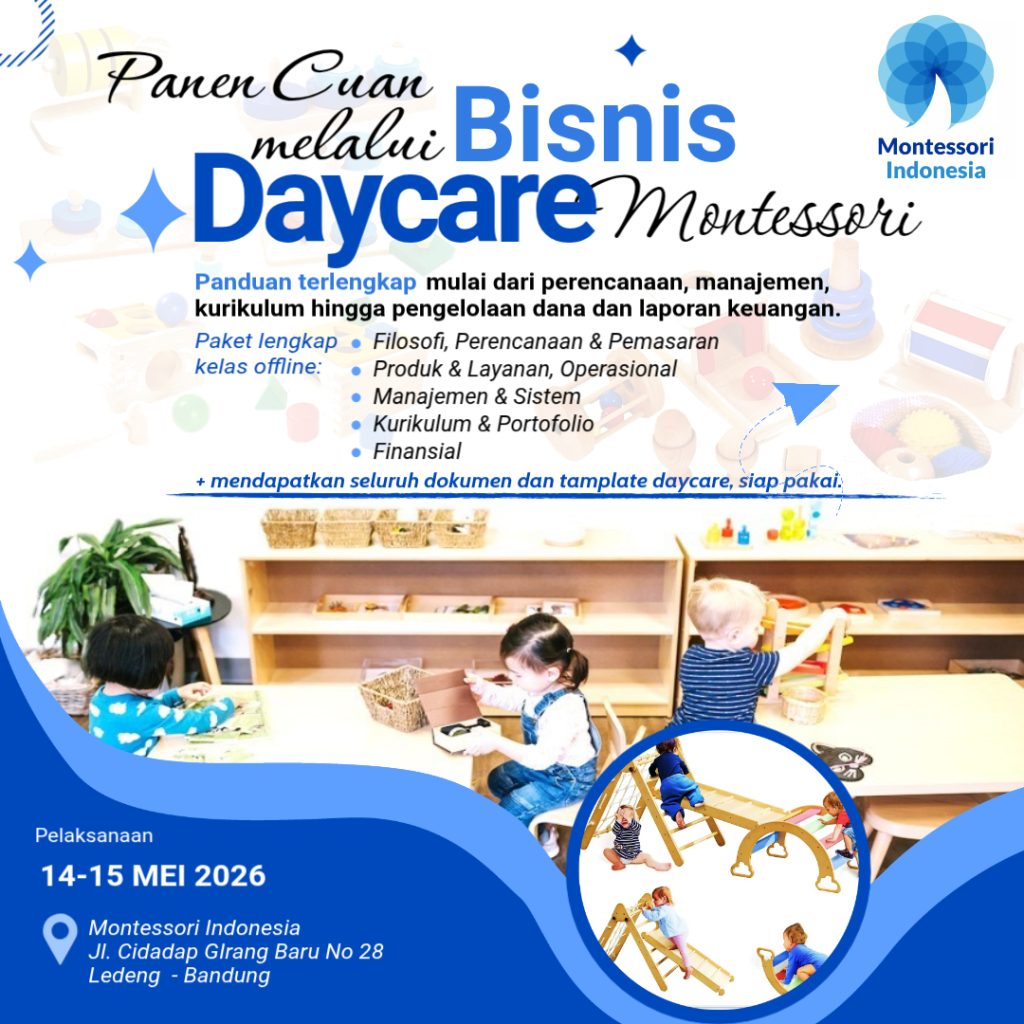 Training Khusus bagi pengusaha yang ingin membangun bisnis Daycare Montessori dan Orangtua yang ingin mempelajari Materi Montessori For Babies. Hubungi Admin dengan Chekout